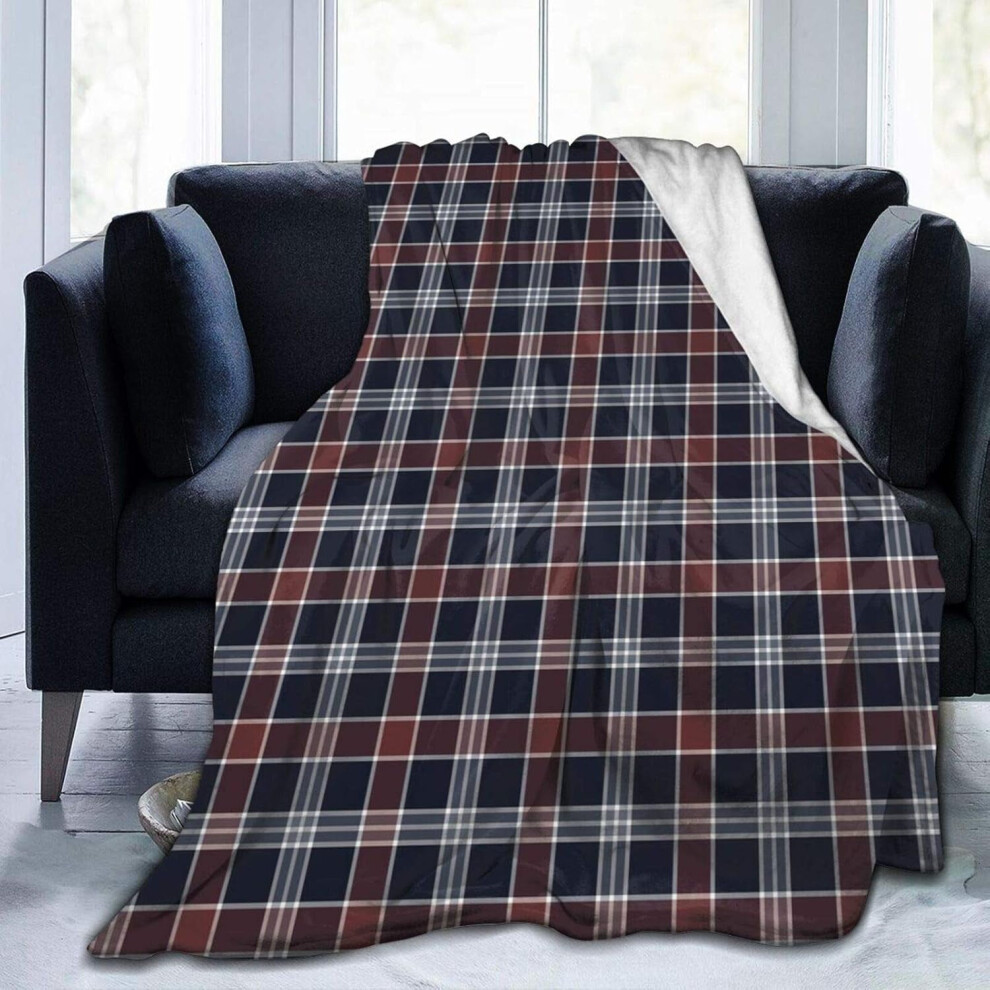 Navy Blue and Green Plaid Throw Blanket, Ultra Soft Flannel Blanket Warm Bed Blanket Fit Sofa and Couch