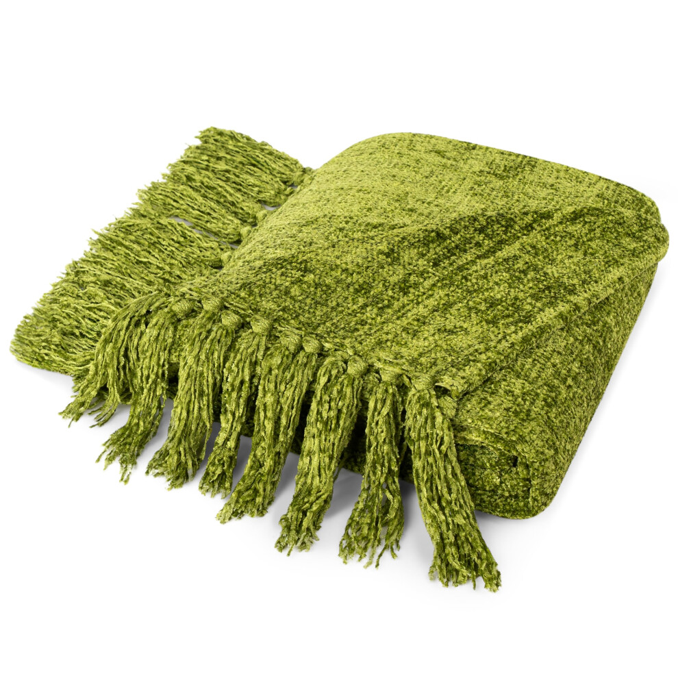 PAVILIA Olive Green Throw Blanket for Couch, Chenille Blanket for Sofa Bed, Soft Knit Woven Blanket with Tassel, Decorative Blanket for Chair Living R