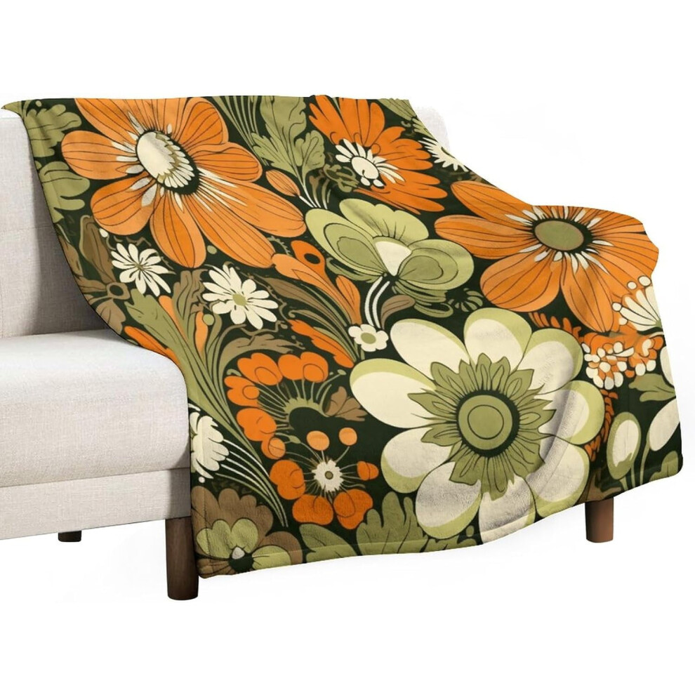 Vintage Orange & Olive Green Floral Throw Blanket, 30"x40" Flannel Fleece for Bed, Couch, Chair, Home Decor, Birthday Gift