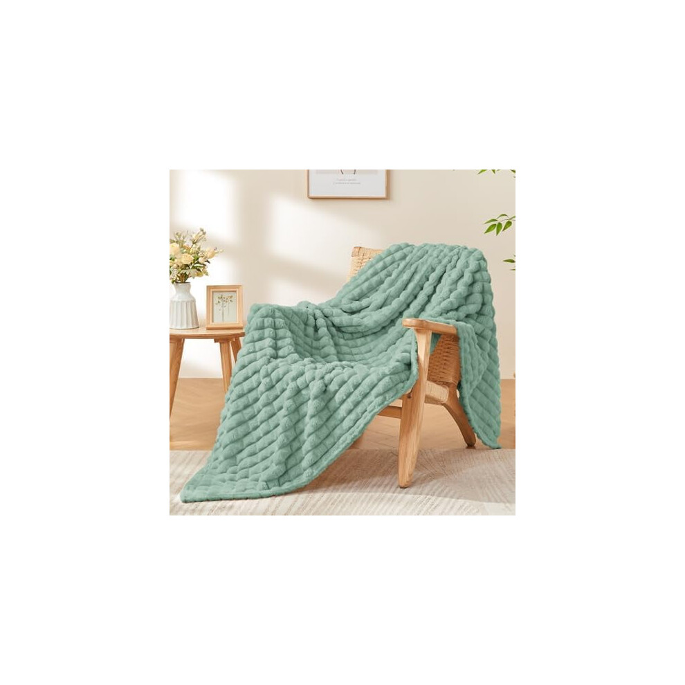 Sage Green Twin Throw Blanket 60x80", Super Soft 3D Checkered Fuzzy Fleece, Cozy Plush Blanket for Fall/Winter Decor