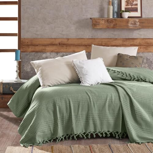 Sage Green Throw Blanket | Cotton Bedspreads King Size | Sofa Throws Large 3 Se
