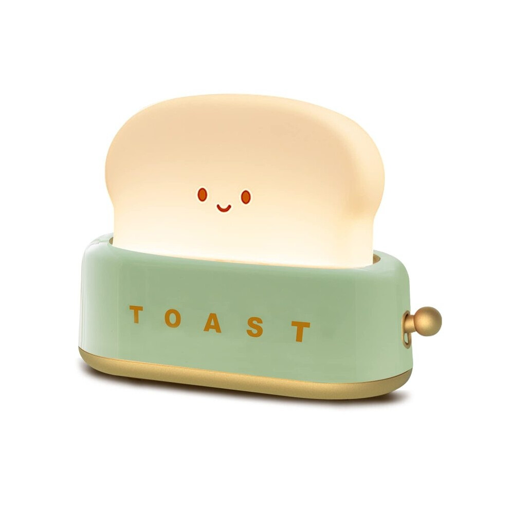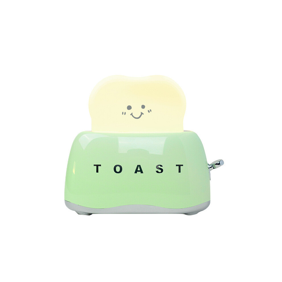 (light green) Toaster Bedside Lamp USB Rechargeable Cute Toast Bread Children's LED Night Light for Bedroom Decor Child Nightlight Kids Gift