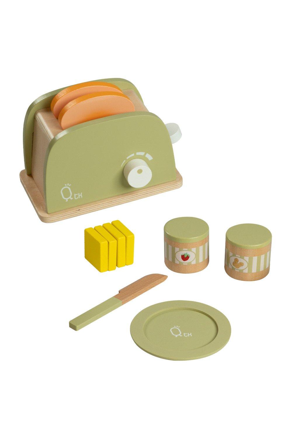 Wooden Toaster Toy Play Kitchen Accessories 11 Pcs Green