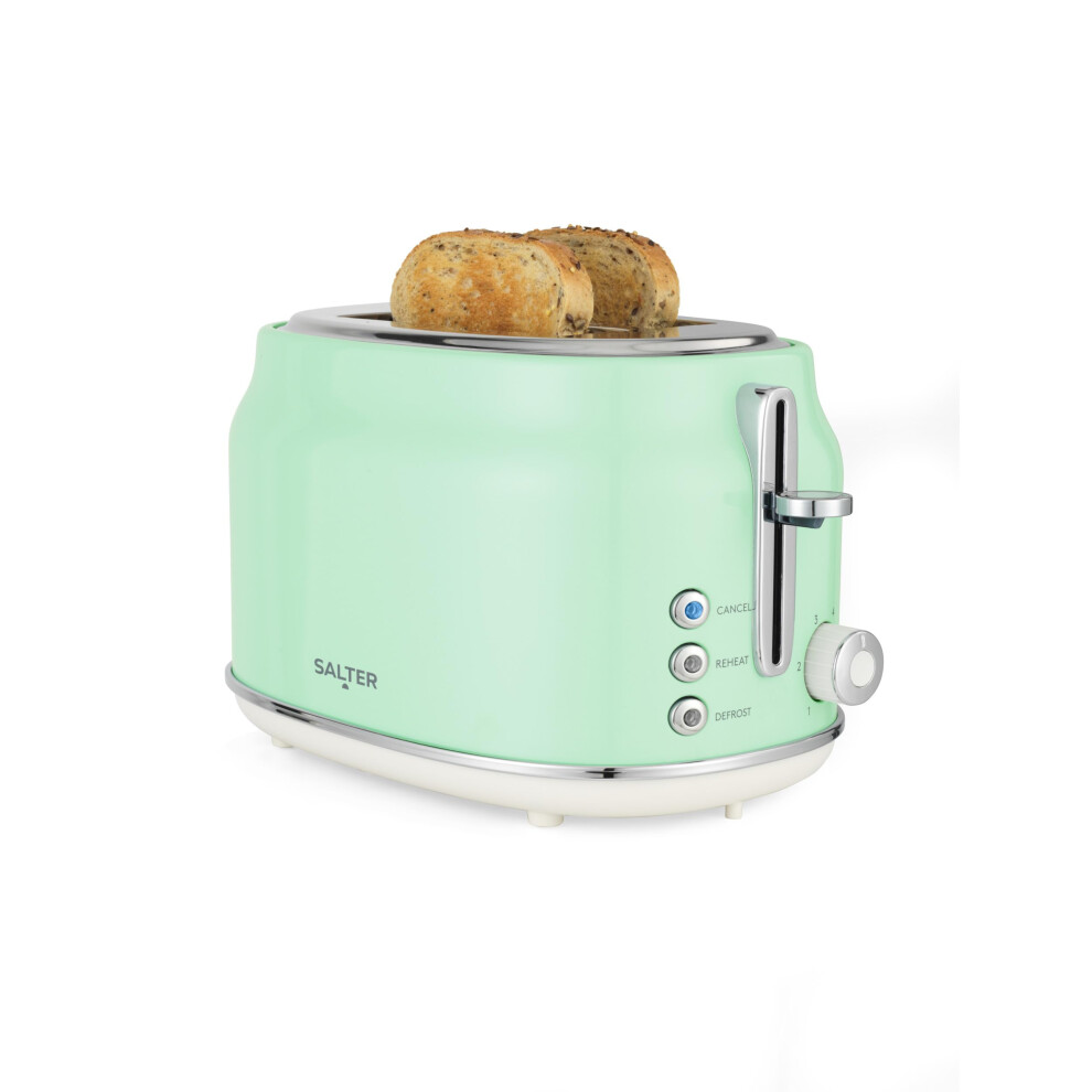 Salter Retro Green 2-Slice Toaster - Wide Slots, 6 Browning Levels, Defrost, Reheat & Cancel, High-Lift Eject, Removable Crumb Tray, Self-Centring,