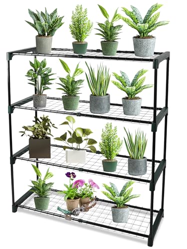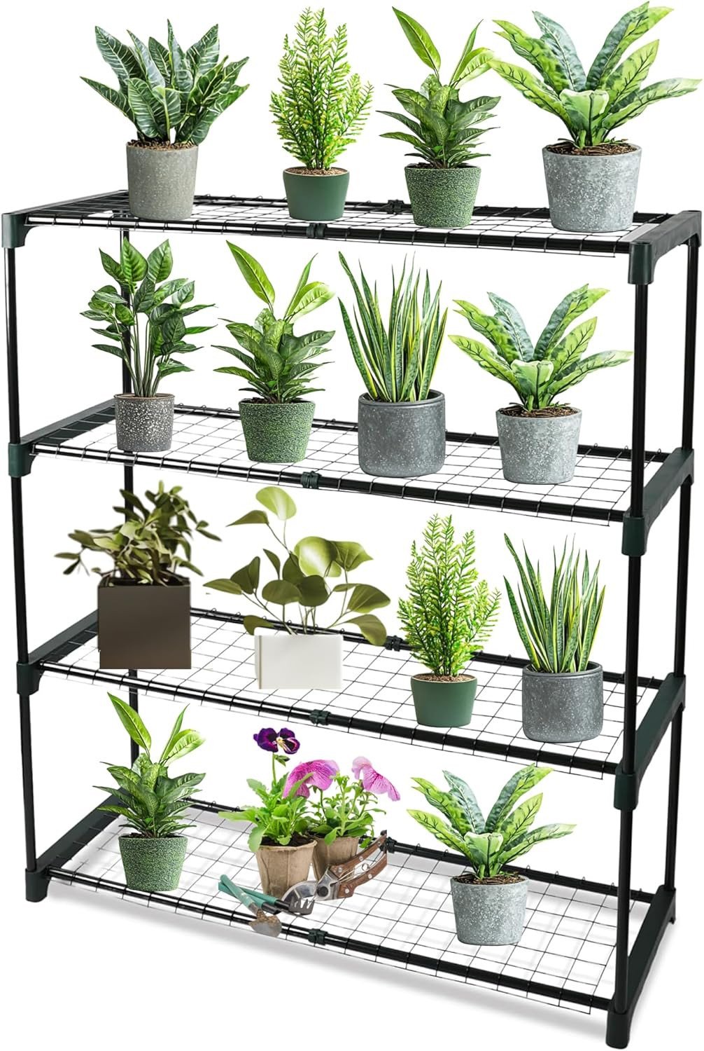 Kiswa collection 4 Tier Steel Mini Garden Greenhouse Staging Shelving Plant Stand - Heavy Duty Plant Flower Stand Rack, Garage Outdoor Home Planter Storage