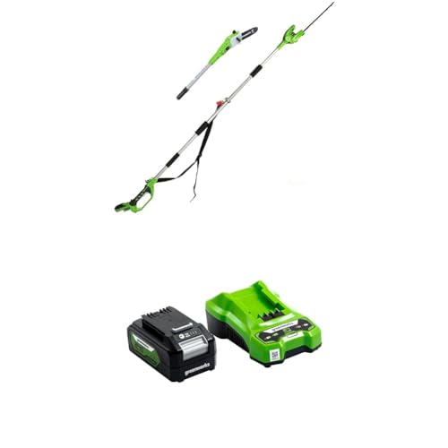 Greenworks 40V Battery Set of 2. Original Greenworks Batteries. Powerful 4Ah Lithium-Ion Batteries & G40PSH Cordless 2-in-1 Pole Saw and Pole Hedge Trimmer with Shoulder Strap