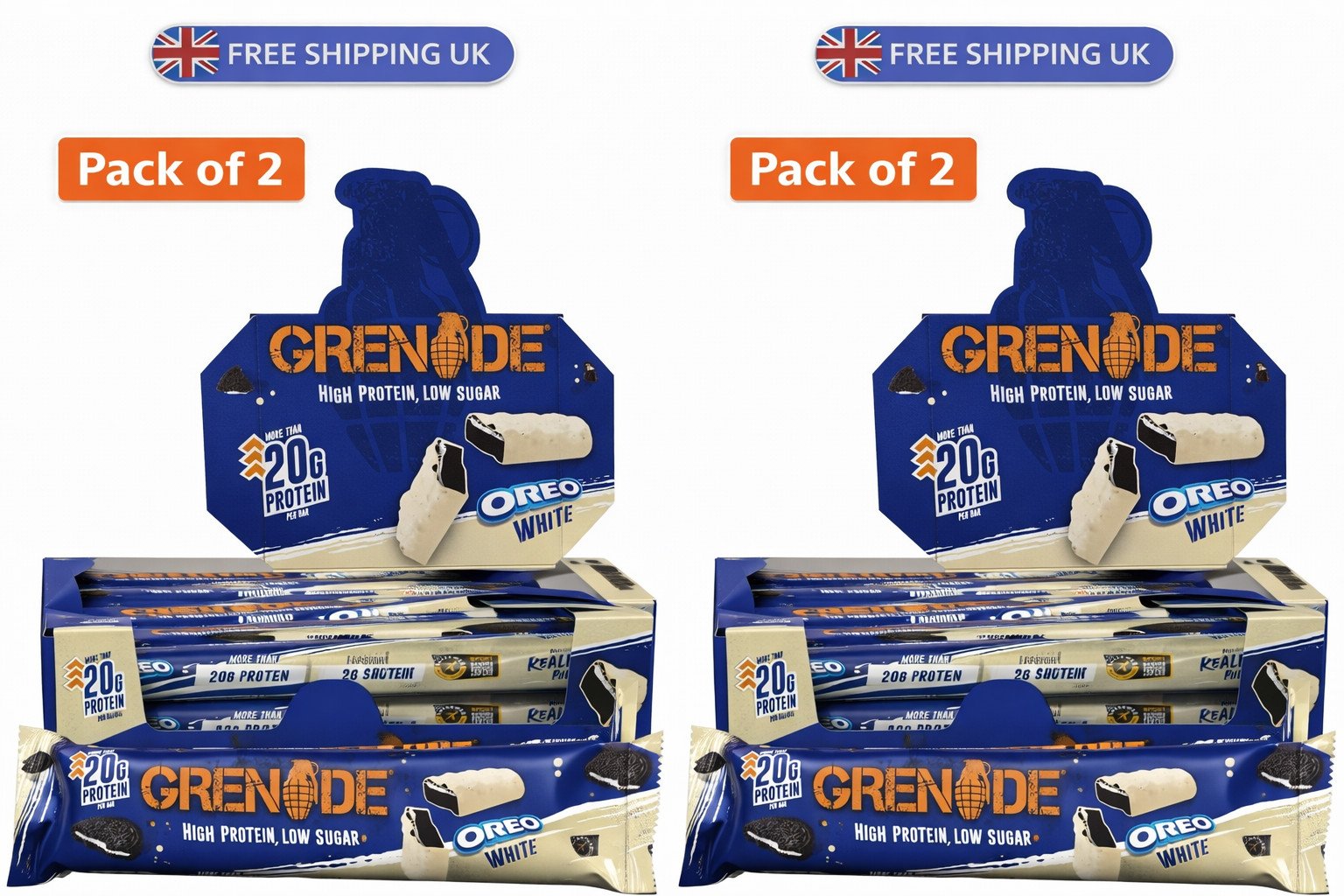 2X(Grenade Oreo White Protein Bar - 12x60g ) PACK OF 2