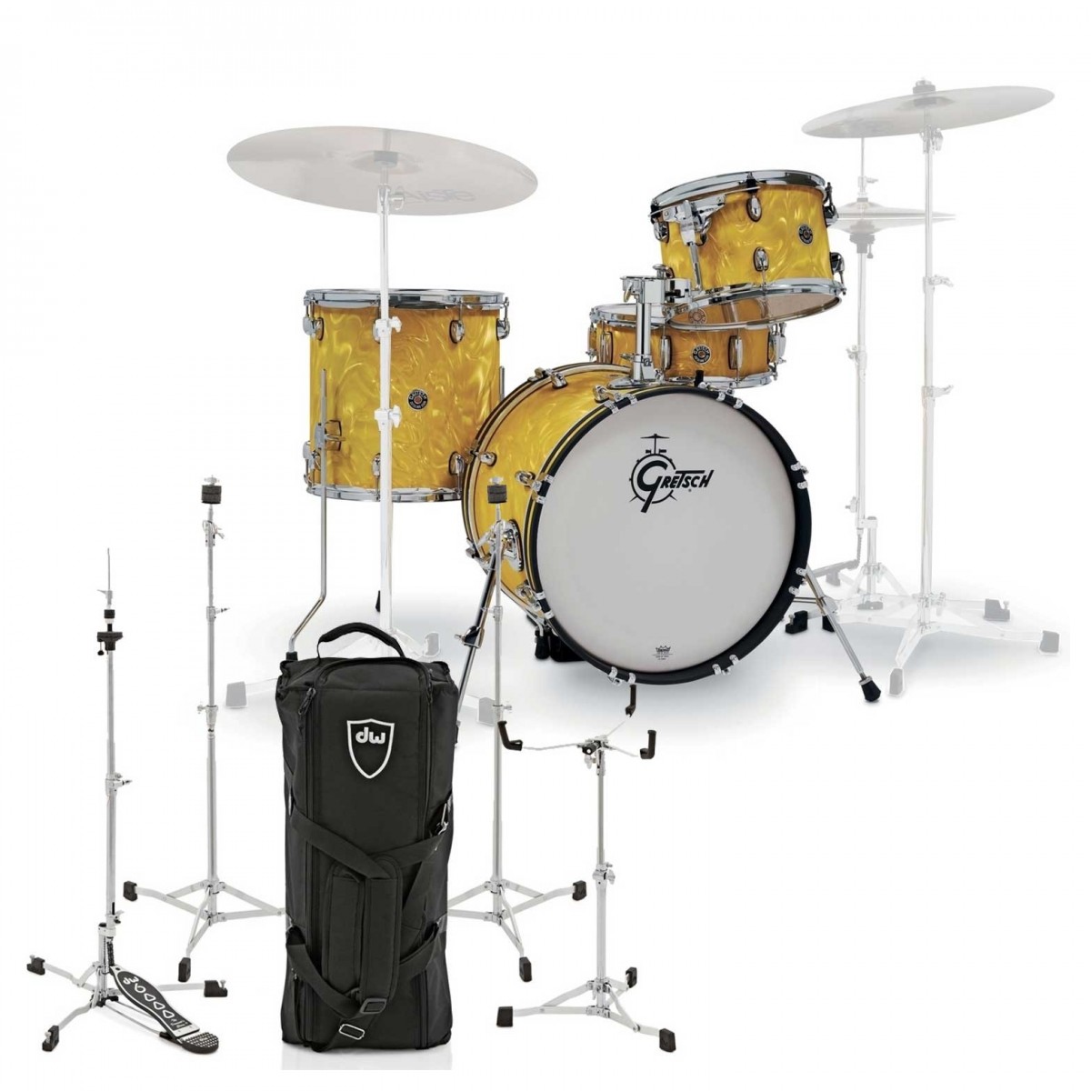 Gretsch Catalina Jazz 18 4pc & DW 6000 Hardware Yellow Satin Flame