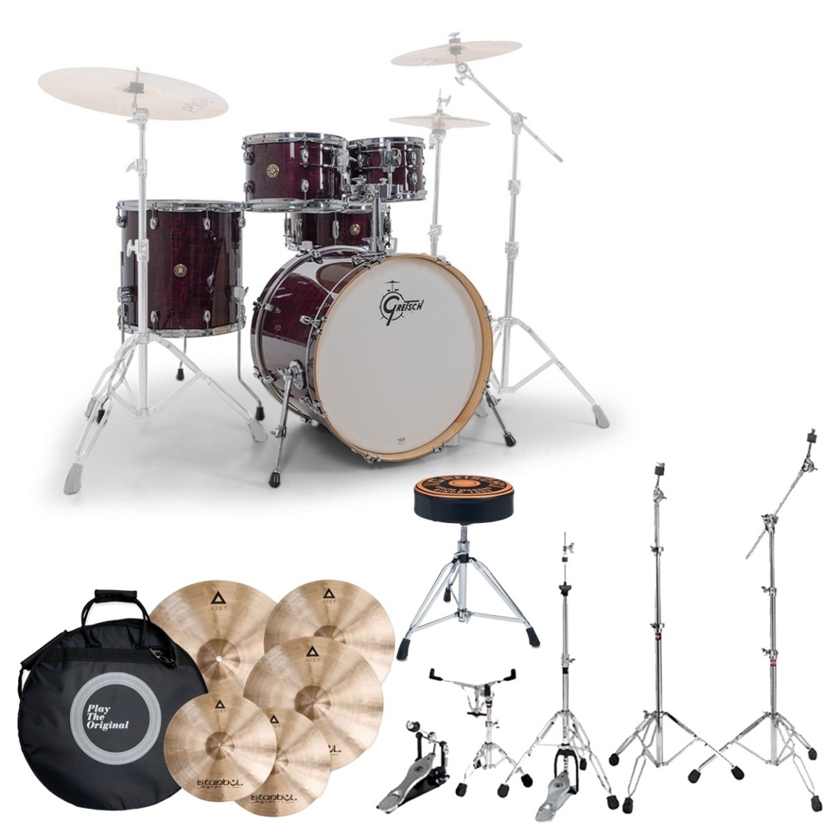 Gretsch Catalina Maple 22 5pc With Istanbul Xist Cymbals Hardware & Throne Antique Maple