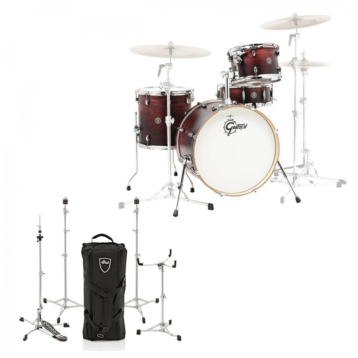 Gretsch Catalina 20 4pc & DW 6000 Hardware Satin Walnut Glaze
