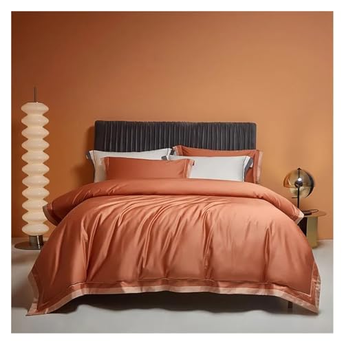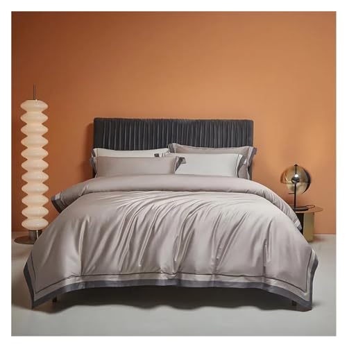 GGYTMQL Four piece bedding set Four Pieces Premium Quality Duvet Cover Linen Gray White Bedding Set 600TC Cotton Sateen Weave Breathable Silky Soft (B-FLAT BED SHEET-QUEEN 4PCS