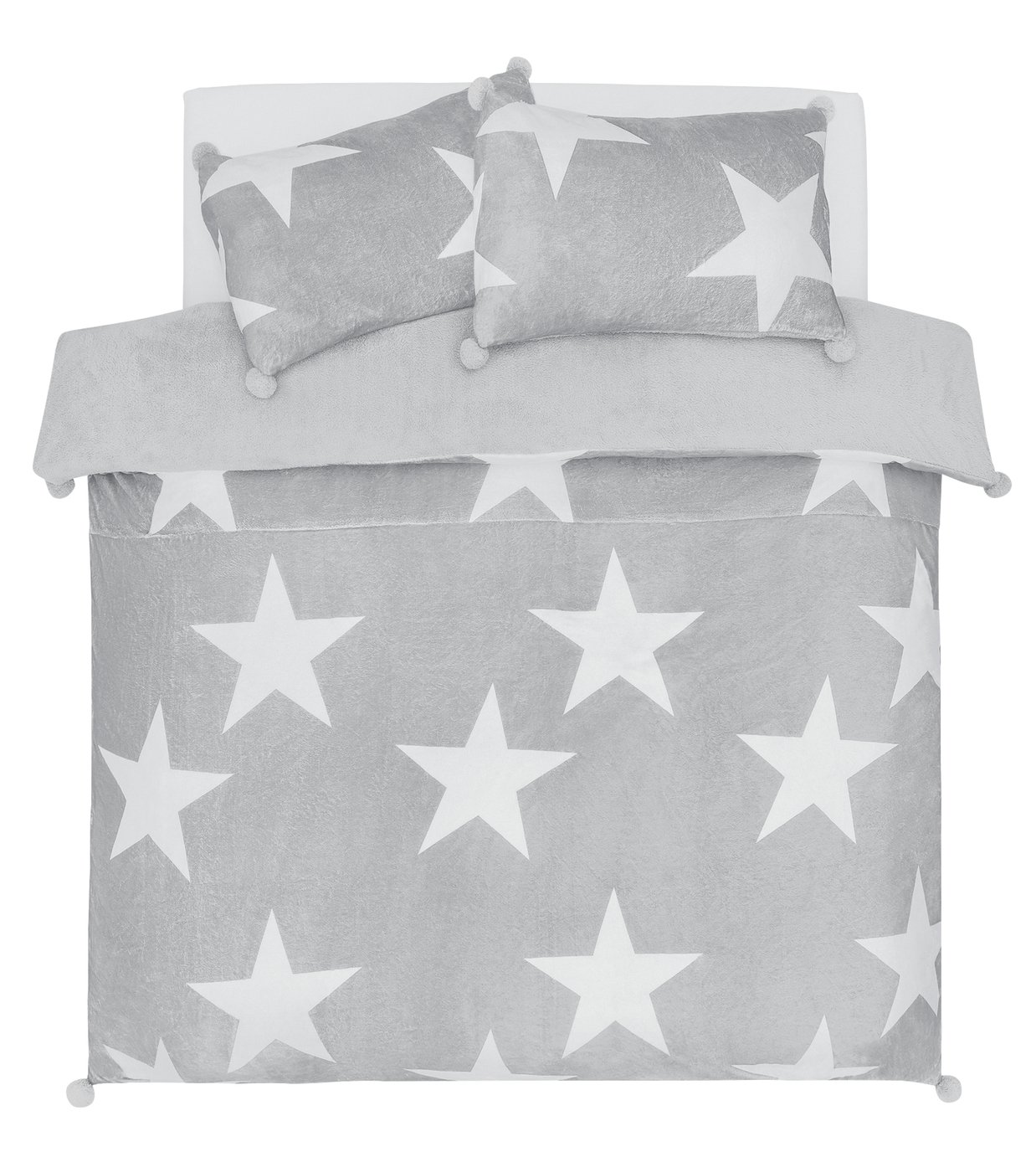 Argos Home Fleece Stars Grey & White Bedding Set - Single