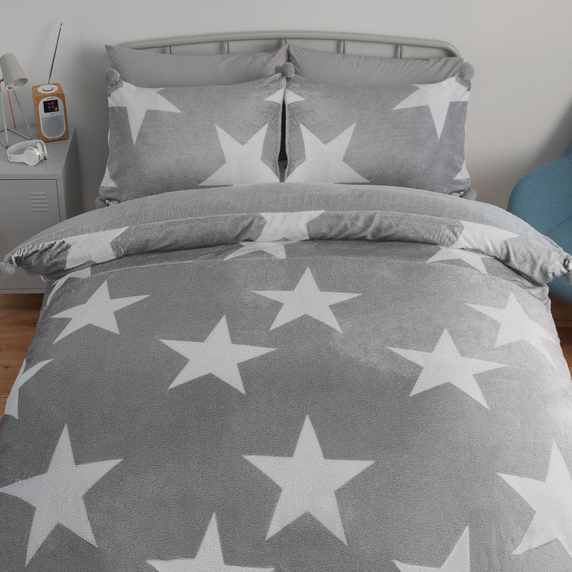 Argos Home Fleece Stars Grey & White Bedding Set - Kingsize