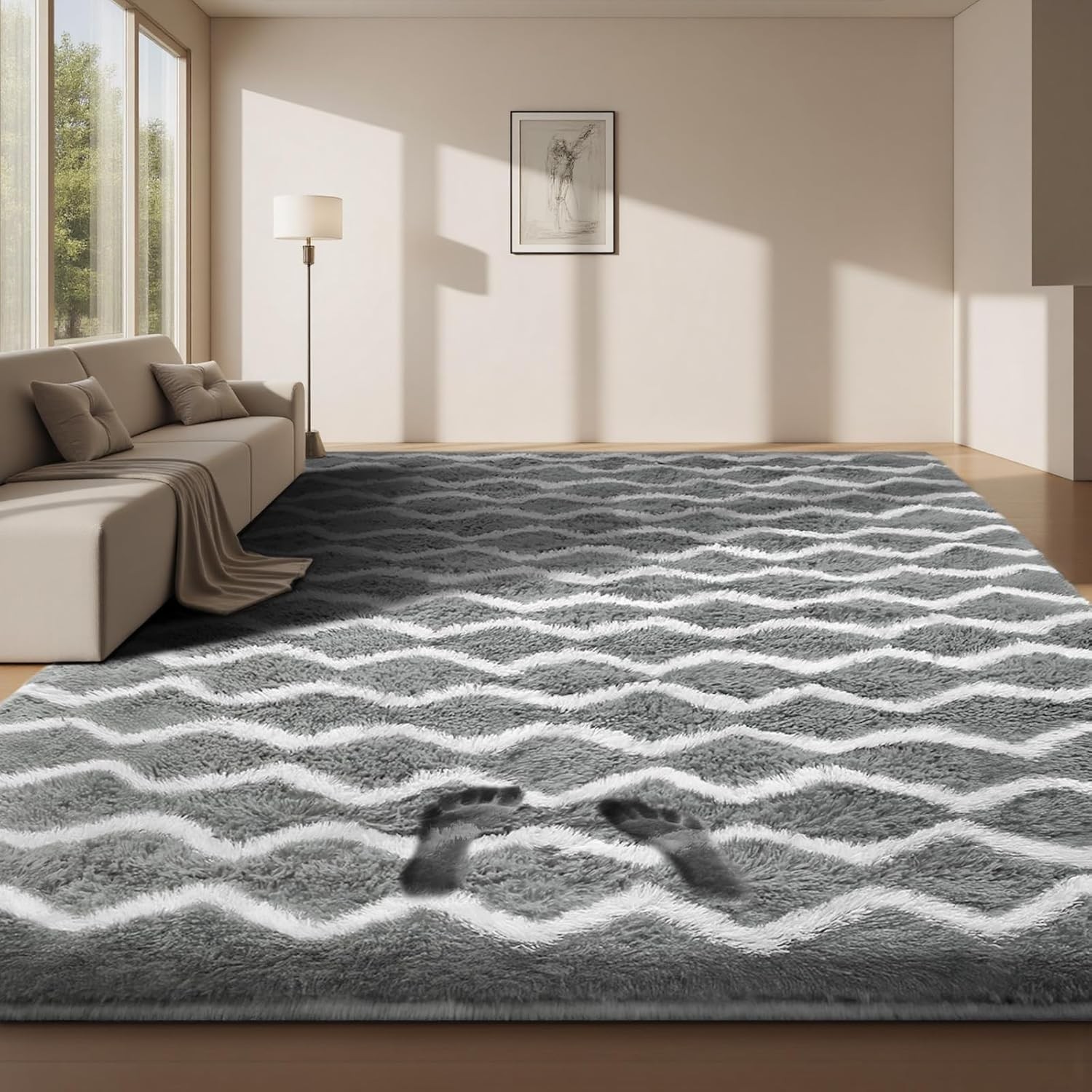 Untimaty Geometric Rugs Living Room - 120x180cm Extra Large Grey White Rug, Ultra Soft Fluffy Shaggy Rug for living room, Washable Anti Slip Area Rug Carpet for bedroom Kid Baby Room Dorm Lounge Decor