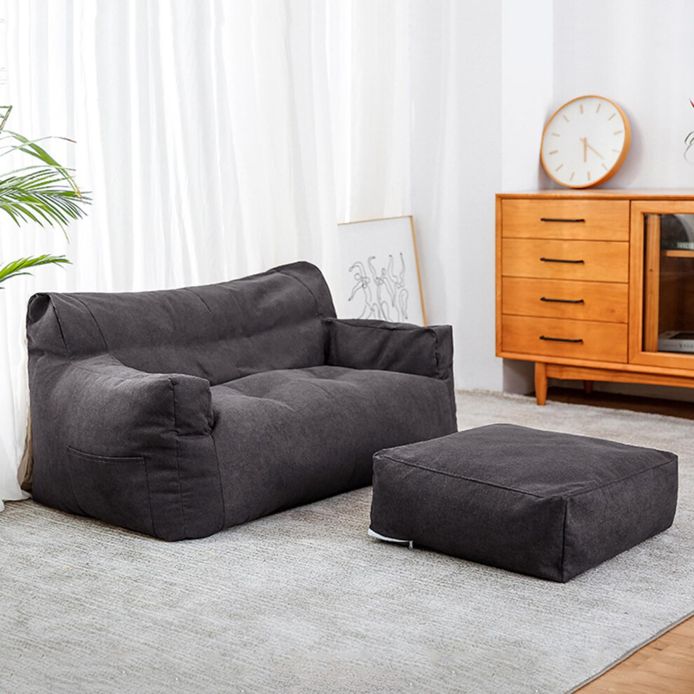 Dark Grey Soft Bean Bag Bed Comfy Floor Lounger with Two Side Pockets