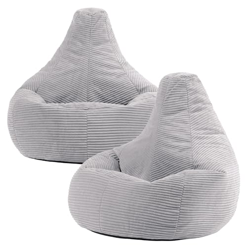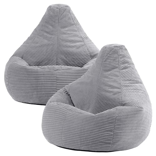 icon Dalton Cord Bean Bag Chair, Set of 2, Grey, Large Adult Bean Bag with Filling Included, Comfy Chair, Living Room Furniture, Bedroom Furniture