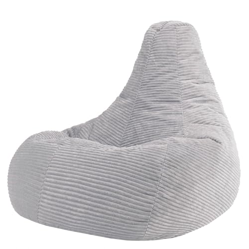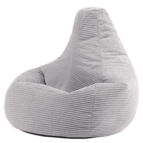 icon Kingston Cord Bean Bag, Grey, Large Adult Bean Bag Chair with Filling Included, Comfy Chair, Living Room Furniture, Bedroom Furniture