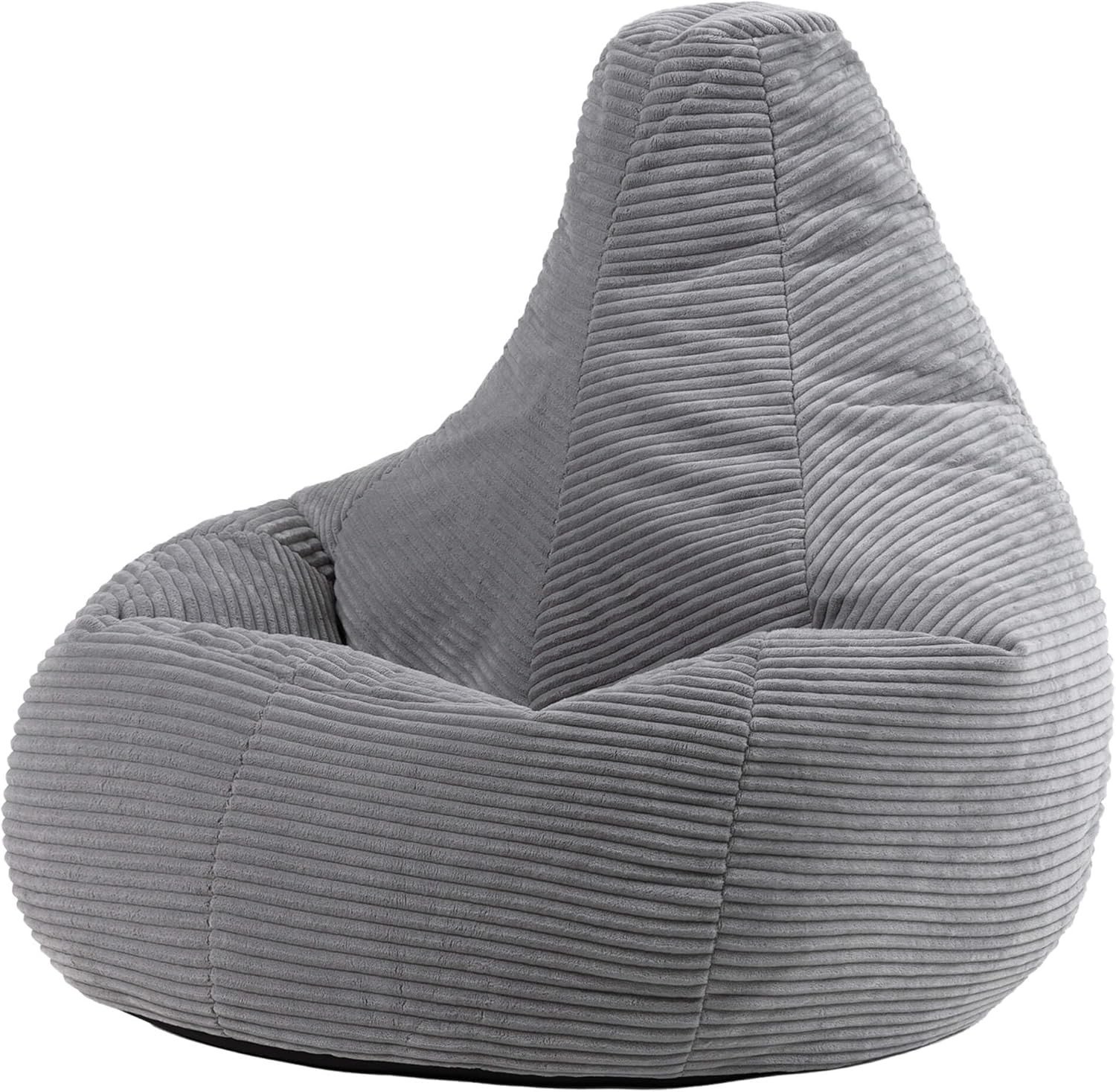 icon Dalton Large Cord Bean Bag Chair, Grey, XXL Adult Bean Bag with Filling Included, Comfy Chair, Living Room Furniture, Bedroom Furniture