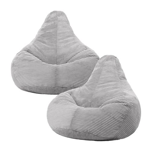 icon Dalton Cord Recliner Bean Bag Set of 2, Grey, Large Adult Bean Bag Chair with Filling Included, Comfy Chair, Living Room Furniture, Bedroom Furniture