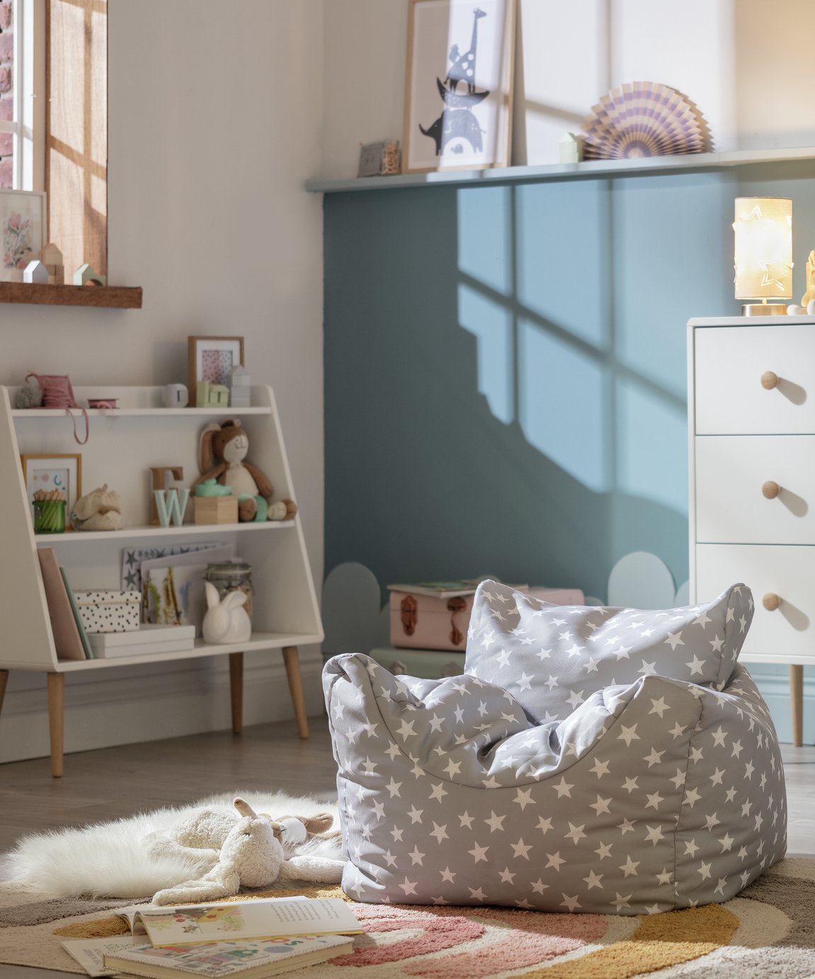 icon Kids Bean Bag Chair, Grey Bean Bag with Stars, Girls Bean Bag or Boys Bean Bag, Kids Bean Bag with Filling Included, Arrives Pre Filled