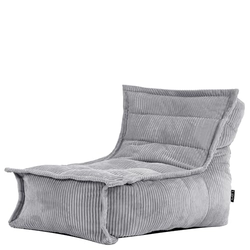 icon Dalton Cord Recliner Bean Bag, Grey, Large Adult Bean Bag Chair with Filling Included, Comfy Chair, Living Room Furniture, Bedroom Furniture
