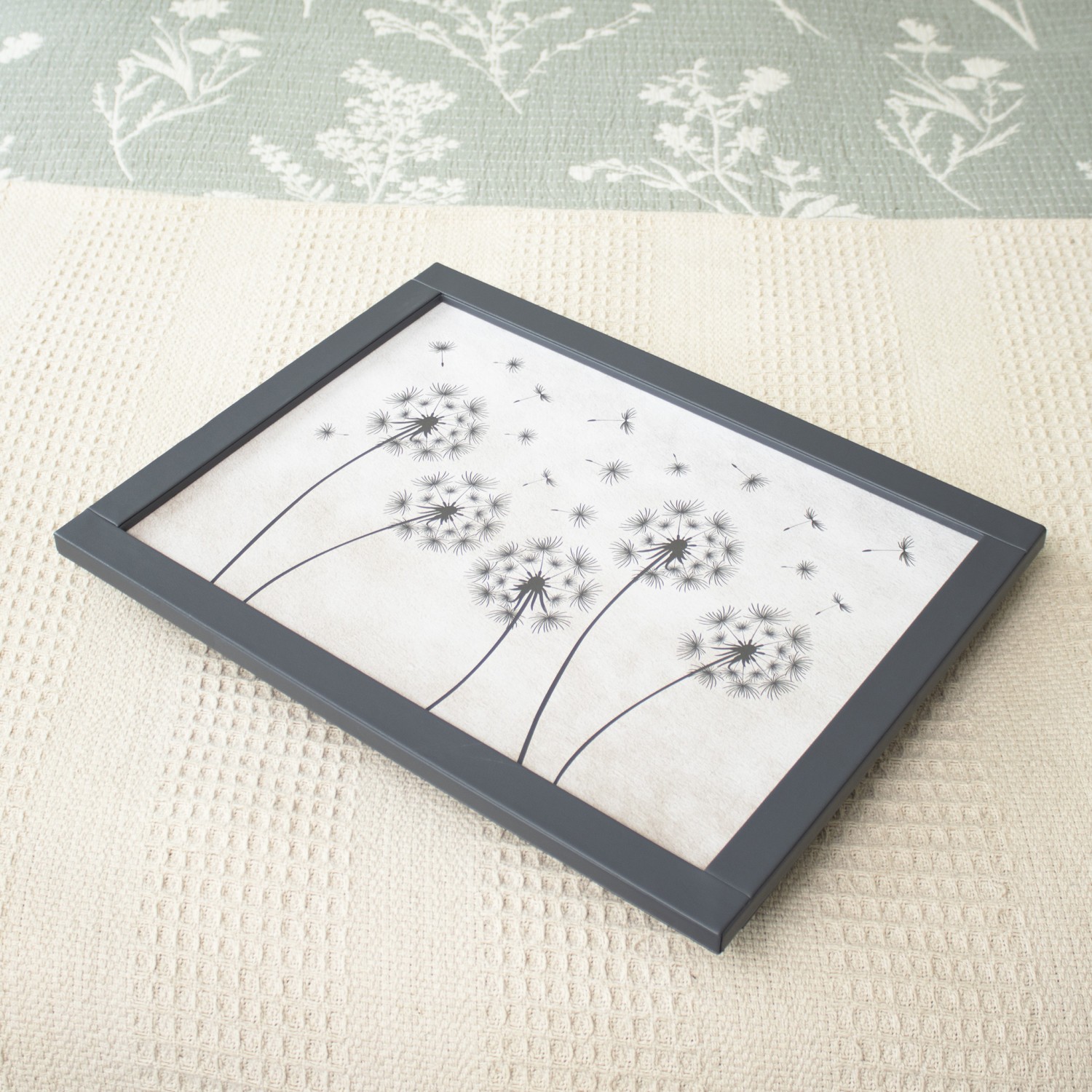 Grey Dandelion Cushioned Laptray Faux Leather Grey Flower Laptop Bean Bag Tray