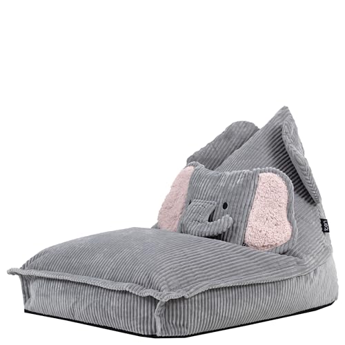 icon Ellie Elephant Kids Bean Bag, Cord Animal Friends, Grey, Kids Bean Bag Chair with Fill Included for Girls and Boys, Childrens Chair, Beanbags for Children, Playroom Décor, Bedroom Accessories
