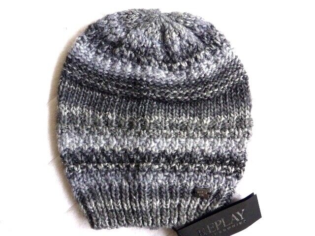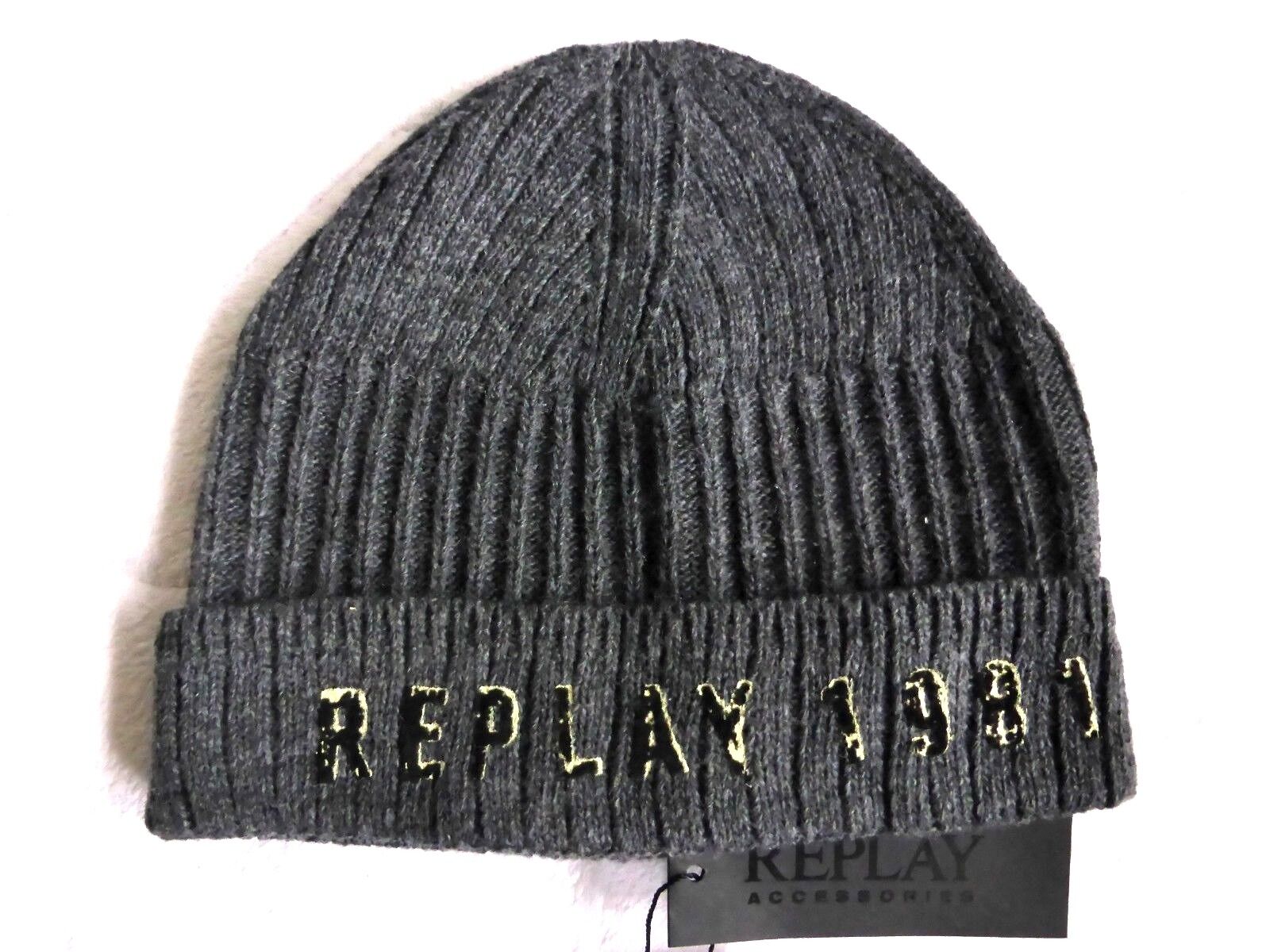 Genuine REPLAY Dark Grey Wool Ribbed BEANIE HAT Cuff OSFA New Tags