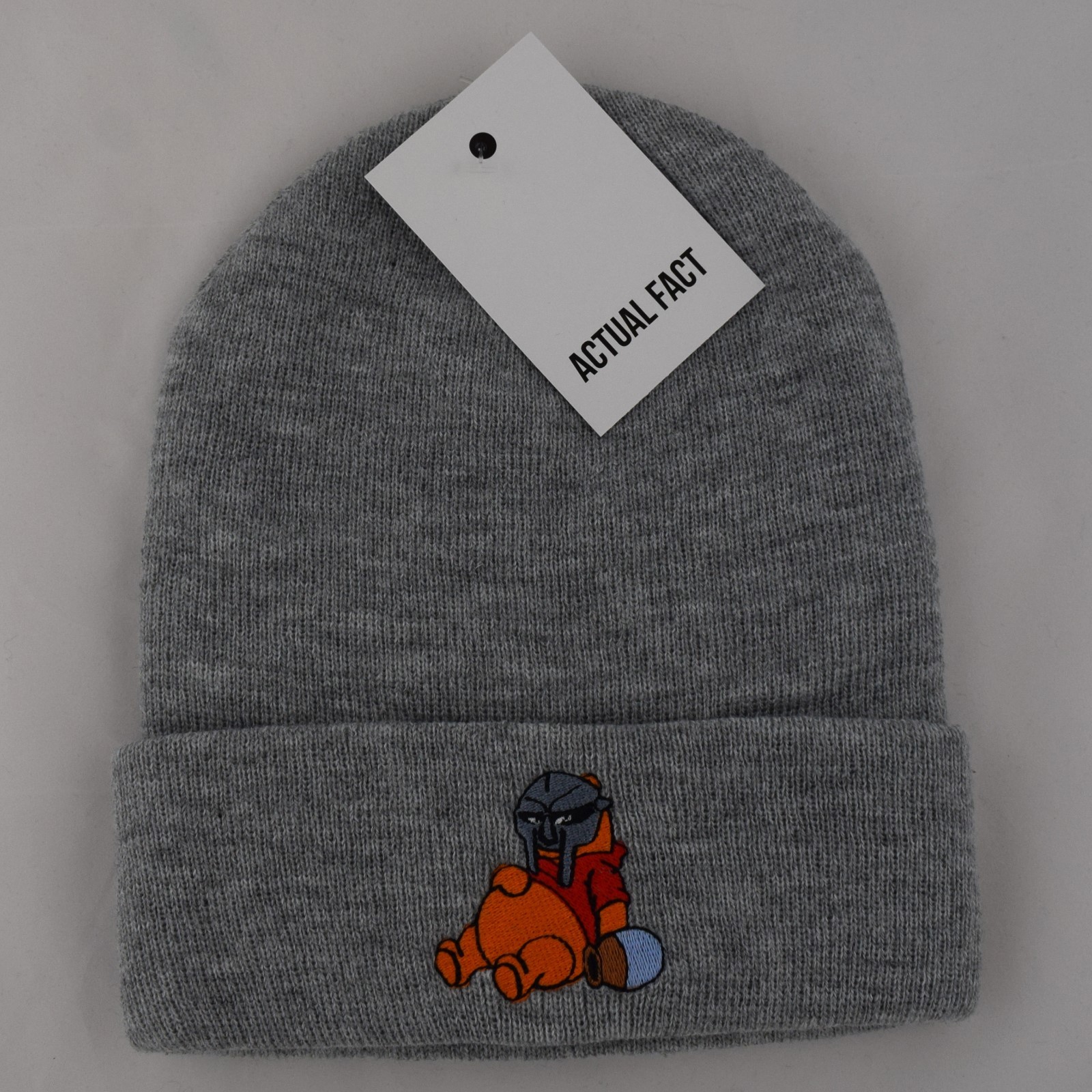 Actual Fact MF Doom Mask x Pooh Embroidered Hip Hop Roll Up Grey Beanie Hat