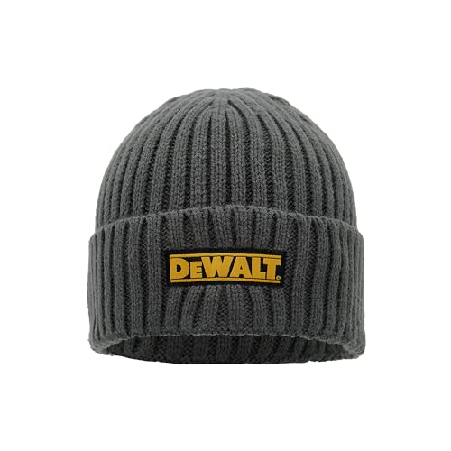 DEWALT Indianapolis Grey Knitted Beanie Hat - Built for Cold Weather - Stretch Base Ribbed Hem ensures a Good fit Woven Badge Detail to Front