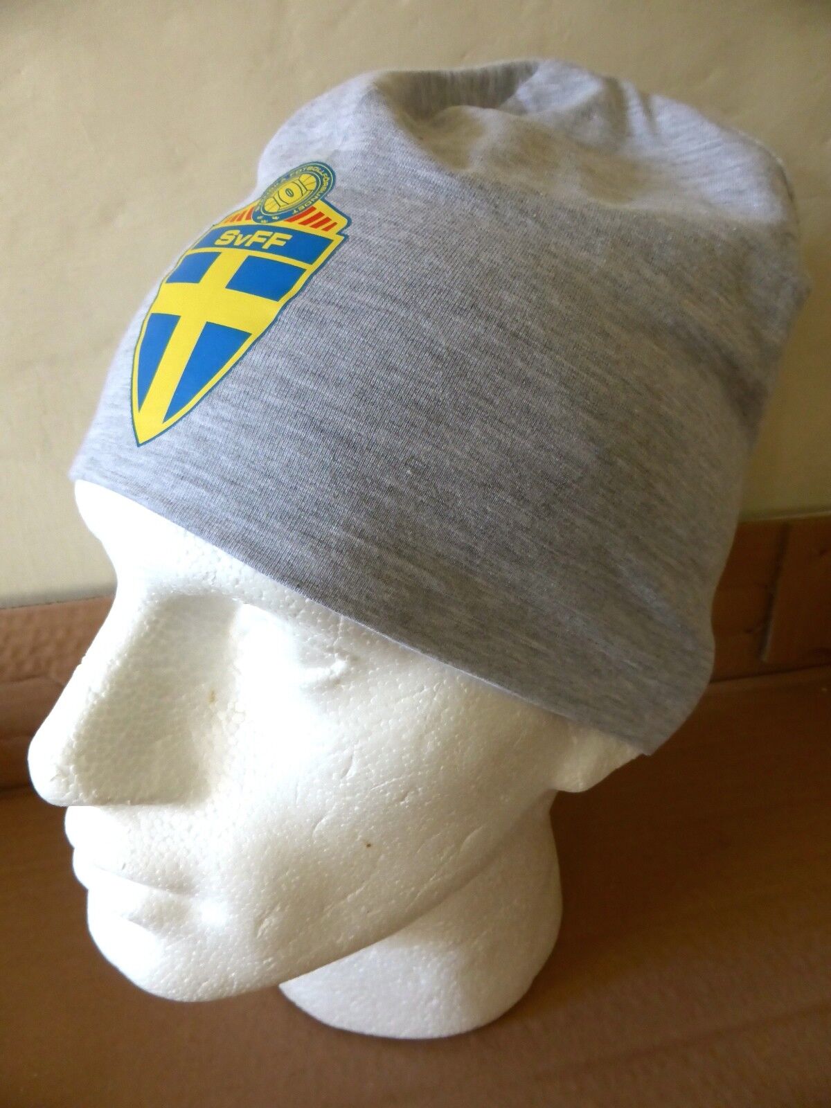SWEDEN Grey Skull Football BEANIE Hat OSFA SVFF Sverige Svenska Soccer Tags