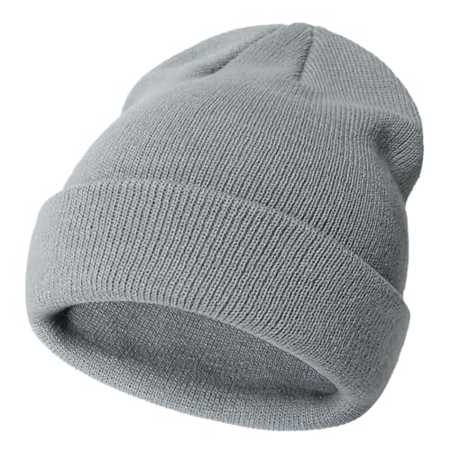 Malaxlx Toddler Grey Beanie Hat Winter Kids Knit Hat Warm Double Layer Soft Cuff Beanie Ski Skull Cap for 2-6 Years Girls Boys