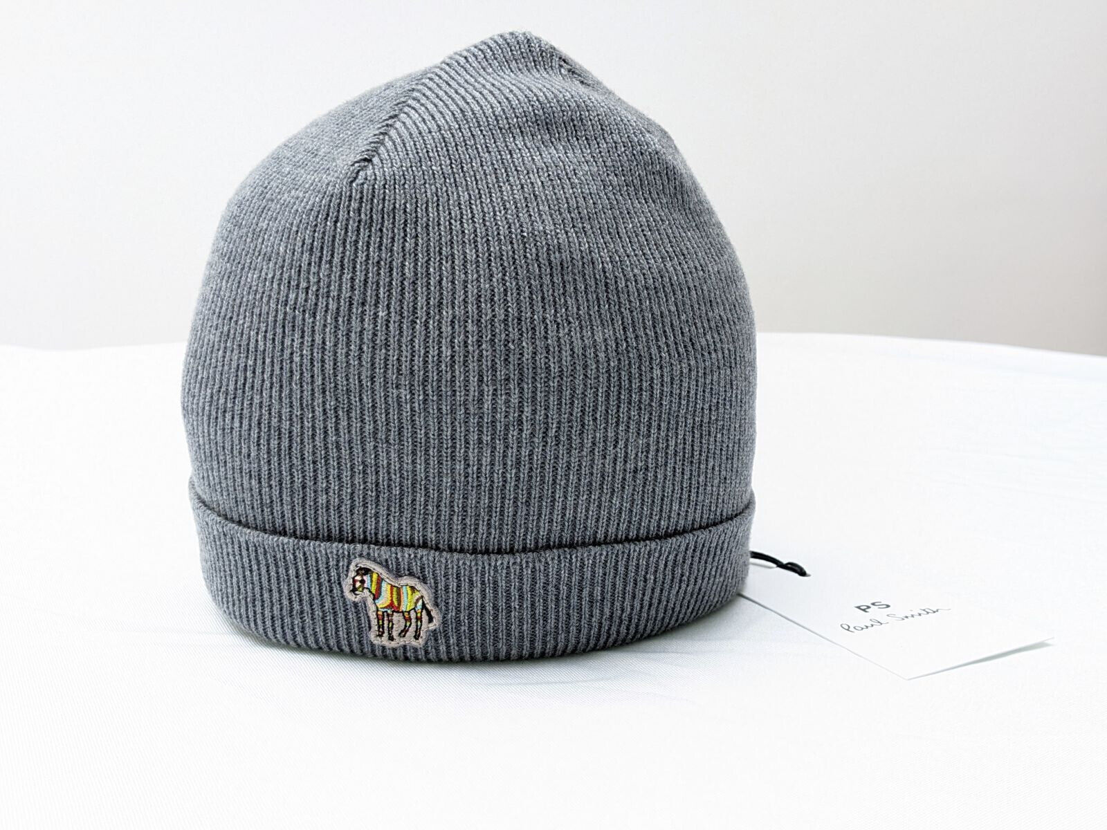 Paul Smith Zebra Logo Grey 100% Wool Beanie Hat RRP: £75
