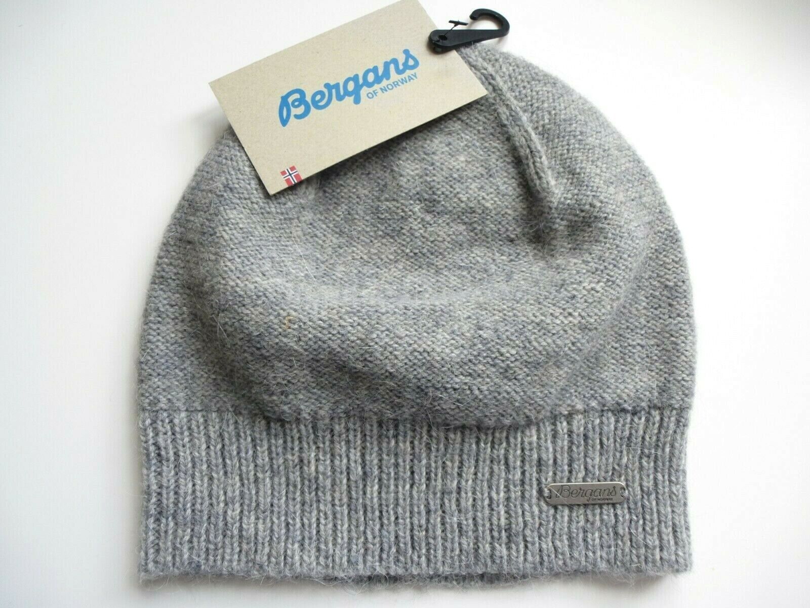 BERGANS of NORWAY Grey Melange Wool BEANIE Hat Toque Logo Womens Tags