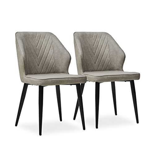CLIPOP Grey Dining Chairs Set of 2 Faux Leather Kitchen Counter Chairs with Backrest and Metal Legs, Lounge Reception Chair for Living Room, Bedroom