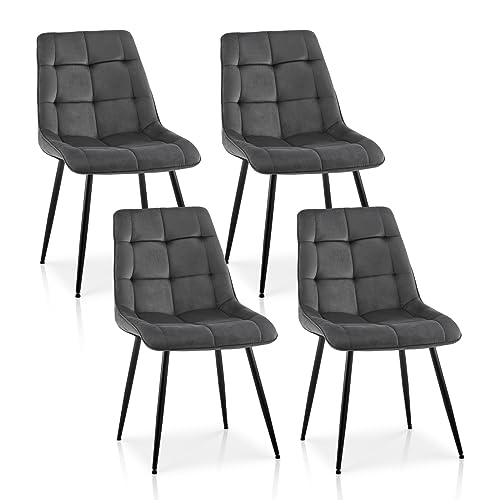 TUKAILAi Dining Chairs Set of 4 Grey Velvet Wide Upholstered Seat with Backrest and Sturdy Metal Legs Reception Chair for Home Living Room Bedroom Apartment Kitchen