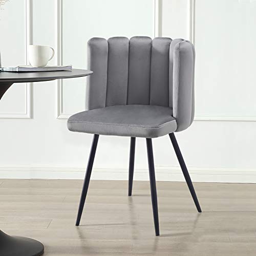 TUKAILAi Unique Velvet Dining Chairs Set of 2 Thick Padded Upholstered Seat Accent Chairs with Black Metal Legs Modern Leisure Armchair Tub Chair for Dining Living Room Bedroom Grey