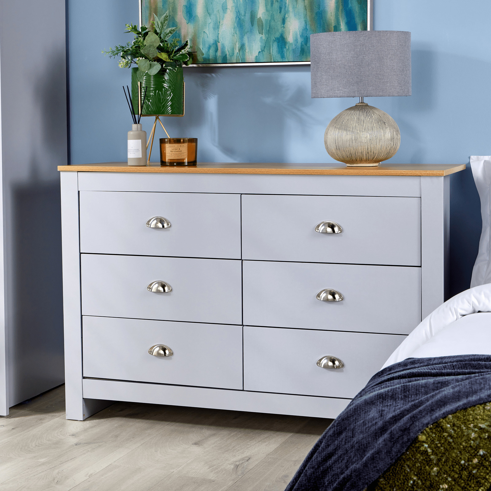 Chest of 6 Drawers Grey Wooden Bedroom Home Furniture Clothing Storage Sideboard