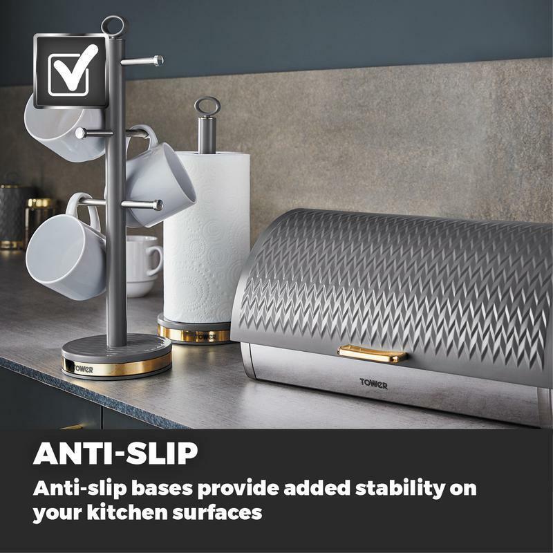 Tower Cavaletto Grey Bread Bin Canisters KItchen Roll Holder KItchen Storage Set