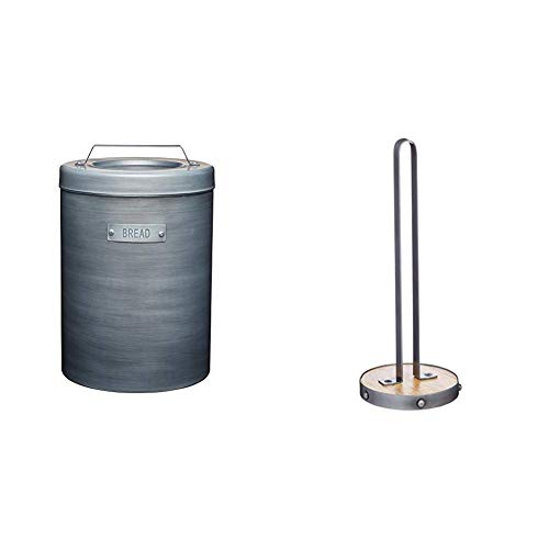 KitchenCraft Vintage-Style Metal Bread Bin, 23 x 23 x 34.5 cm (9" x 9" x 13.5") - Grey & Industrial Kitchen Metal/Wooden Kitchen Roll Holder, 31 cm (12")