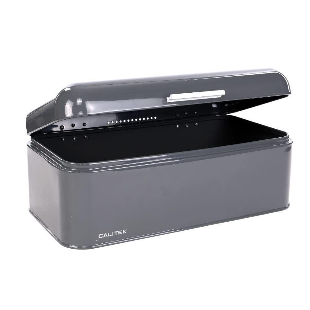 CALITEK Bread Bin Kitchen Counter Vintage Style Coated Carbon Steel Grey