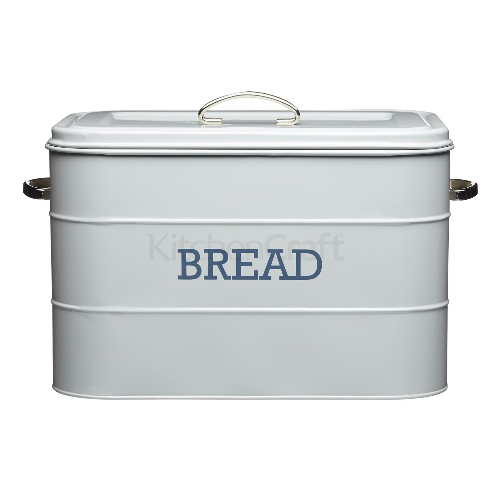 Bread Bin Vintage Grey Metal Tin Labelled Food Storage Airtight Lid Container