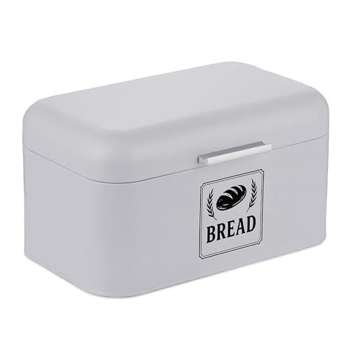Relaxdays bread bin, bread box with lid & handle, HWD: 17x42x24 cm, bread storage, retro style, metal, grey