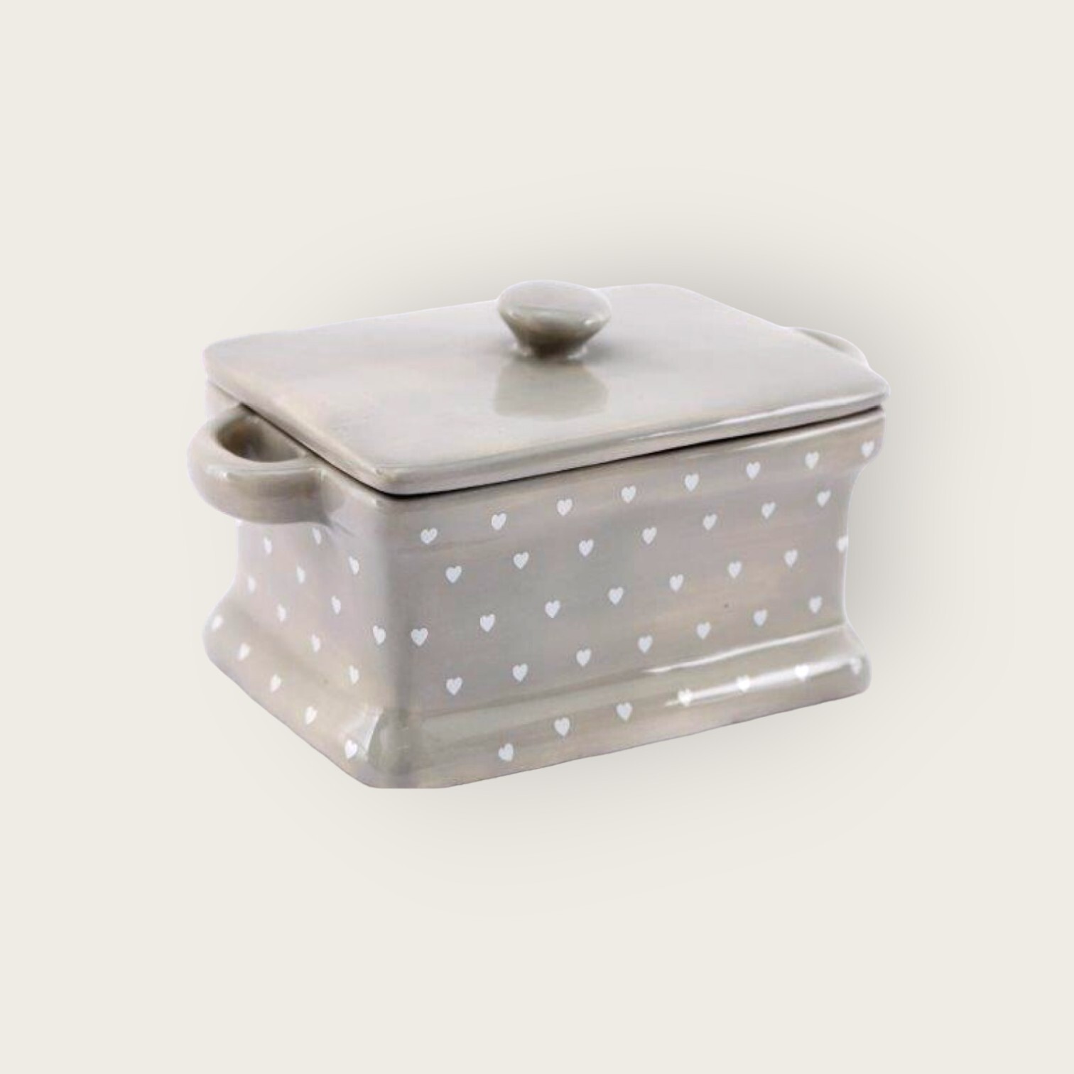 Decorative Grey with White Hearts Butter Dish and Lid