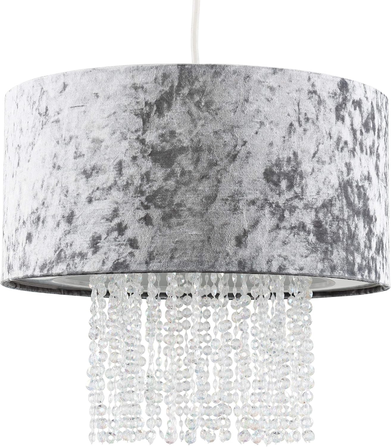 MiniSun | Modern Silver Grey Velvet Ceiling Light Shade with Clear Acrylic Droplets | Pendant Lights, Home Décor & Improvement Essential | 330mm Shade Width