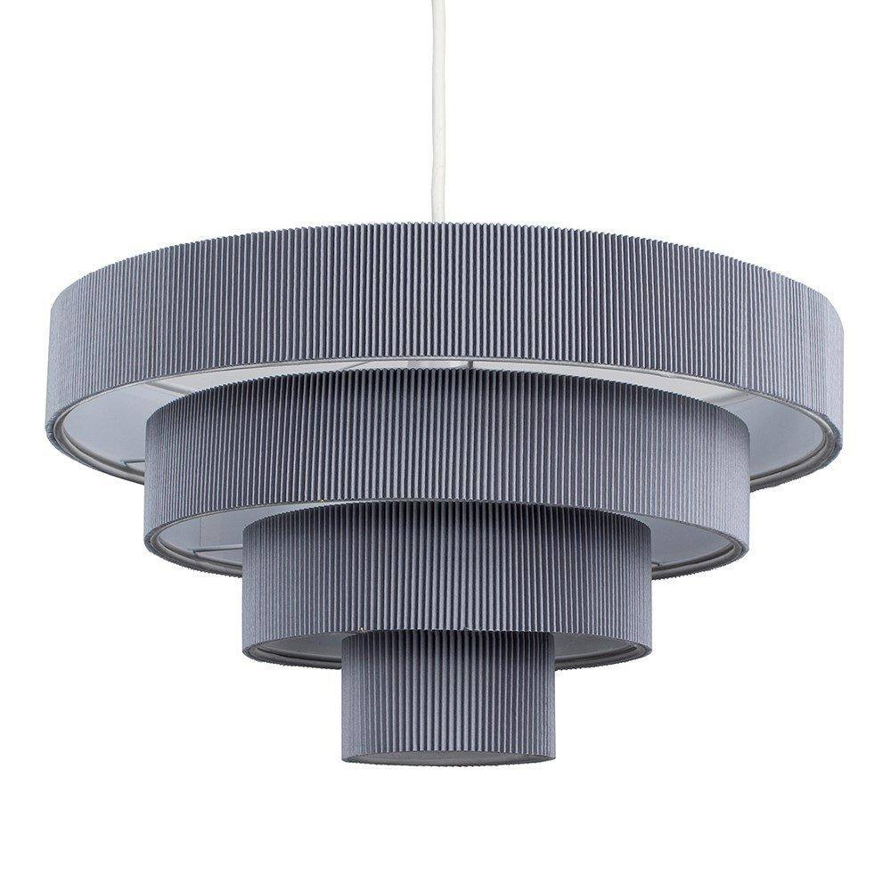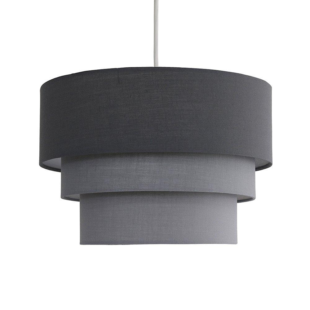 Modern Dark Grey Ceiling Light Shade Pendant Easy Fit 3 Tier Fabric Lamp Shade