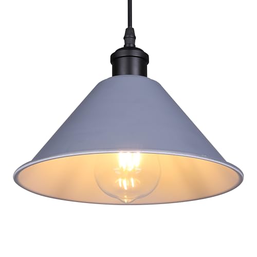 GIGGI Retro Grey Light Shade Ceiling, Cone Metal Lampshades for Ceiling Lights, Industrial Easy Fit Pendant Lamp Shades for Table Lamps, Living Room, Bedroom, Kitchen, Hallway, Home Décor