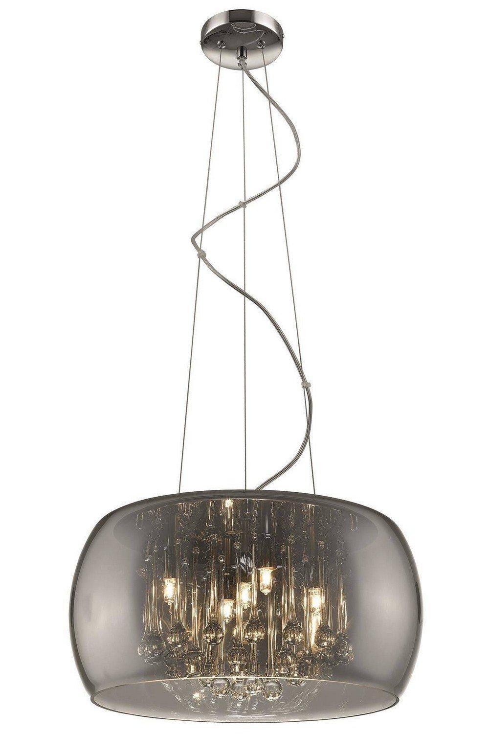 Spring 5 Light Ceiling Pendant Chrome Smoked grey with Glass Shade with Crystals G9