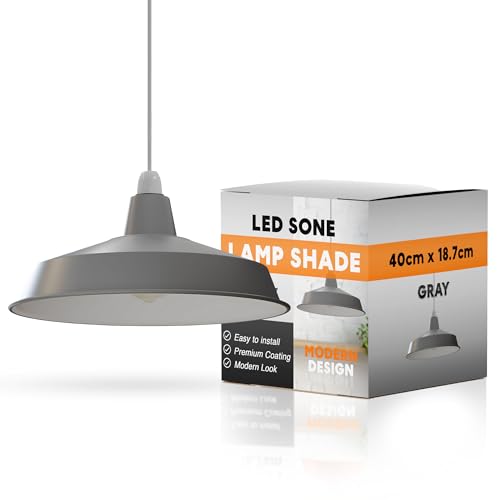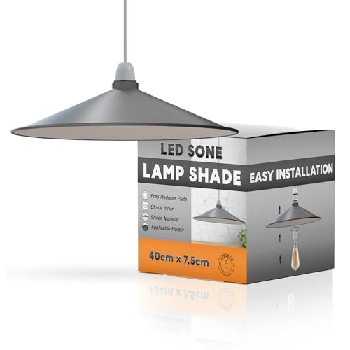 Metal Lamp Shades Grey Light Shade Ceiling – 40cm Modern Lampshades for Ceiling Lights, Replacement Lamp Shades for Table Lamps, Floor Lamps, Living Room, Bedroom, Home Décor