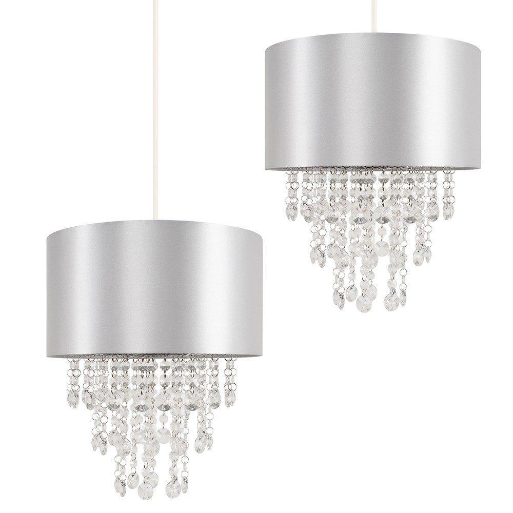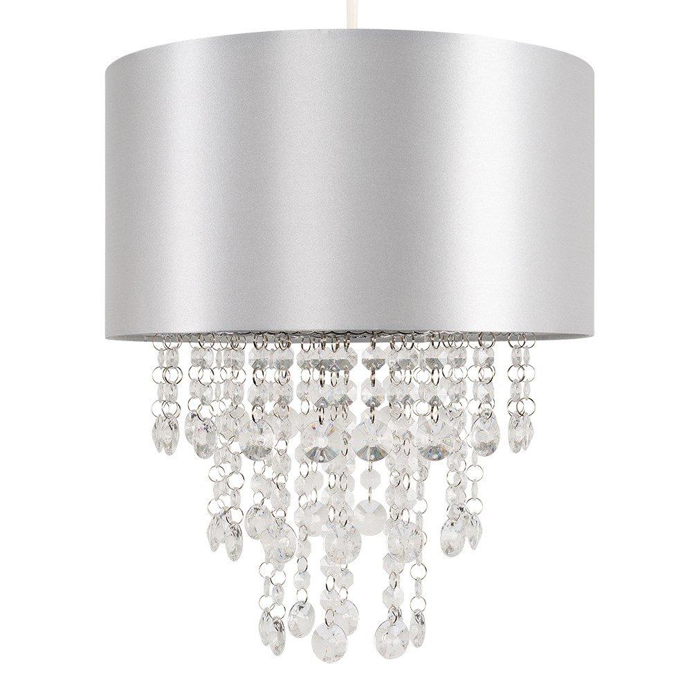 ValueLights Jesmond Grey Jewel Ceiling Pendant Shade With Warm White Bulb